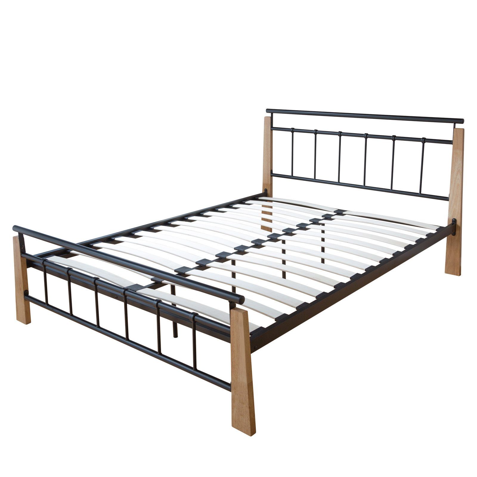 En.casa metallbett 140x200cm schwarz auf stahlrahmen mit lattenrost bettgestell design doppelbett gästebett schlafzimmer.